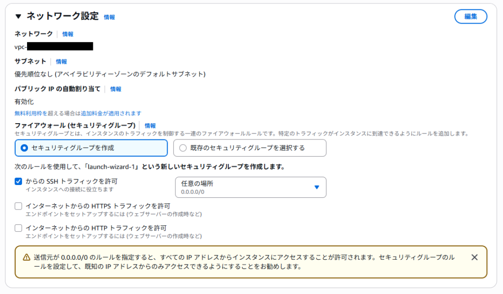 EC2にインスタンス(Amazon Linux 2023)を立ち上げる
