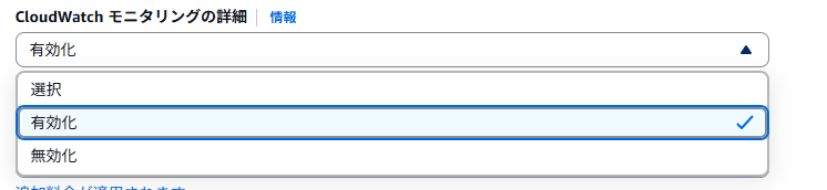 CloudWatch モニタリングの詳細を有効化しておきます。