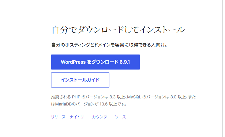 まずは以下のWordPress公式サイトからWordPressを日本語するために日本語版のWordPressのzipファイルをダウンロードします。