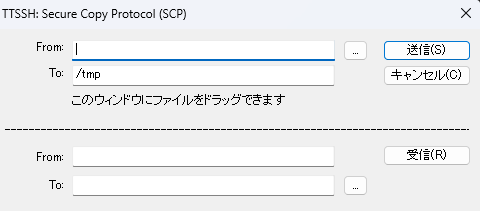 上段のFrom:に今回送信するZIP化したlanguagesファイルを指定して、To:に/tmpを指定します。