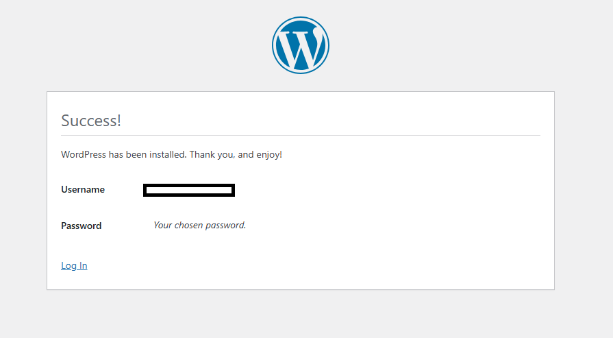インストールが完了すると以下の画面が表示されます。ログインしてWordPressの管理画面に遷移(せんい)しましょう。