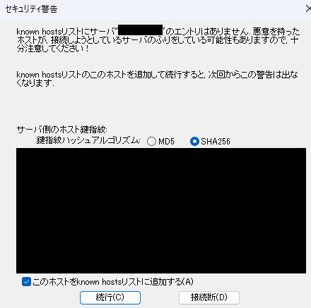 以下のウィンドウが表示されたら、続行(C)を押下します。