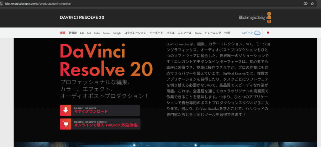 https://www.blackmagicdesign.com/jp/products/davinciresolve