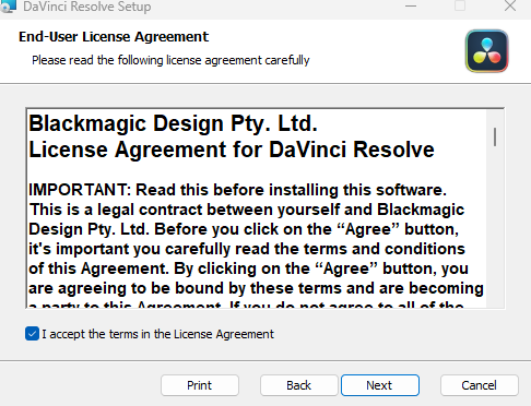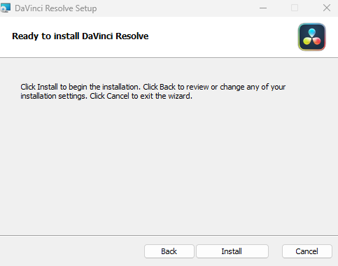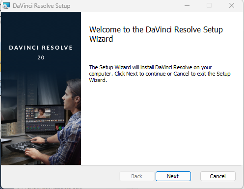 しばらく待っているとDaVinci Resolveのセットアップウィンドウが表示されました。