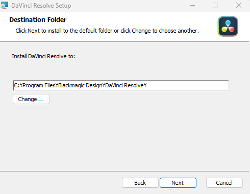 Zip形式でダウンロードしたDaVinci Resolveを解凍して.exeファイルを実行します。