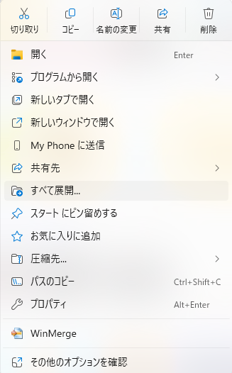 Zipファイルを右クリックして「すべて展開…」をクリック。