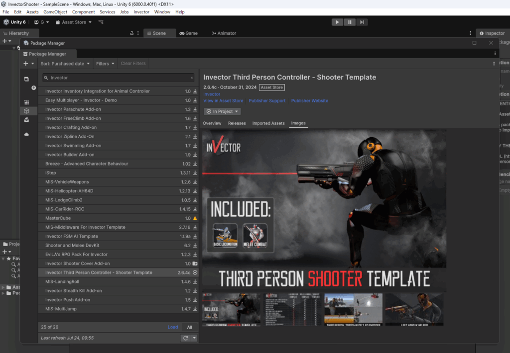 Invector Shooterアセットを実際にインポートしてみます。