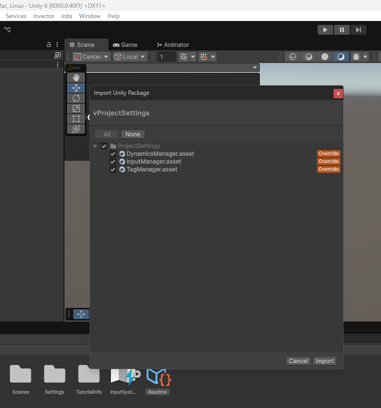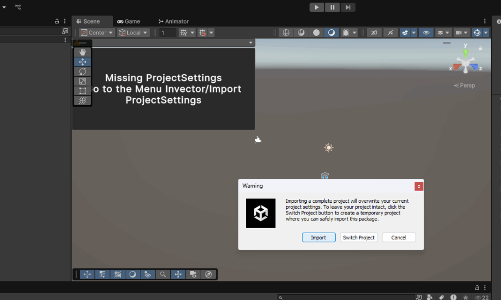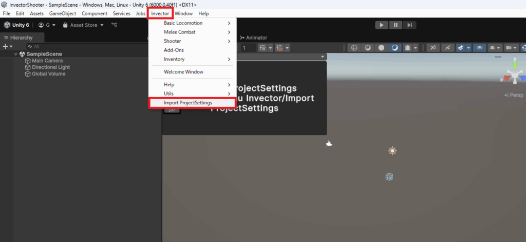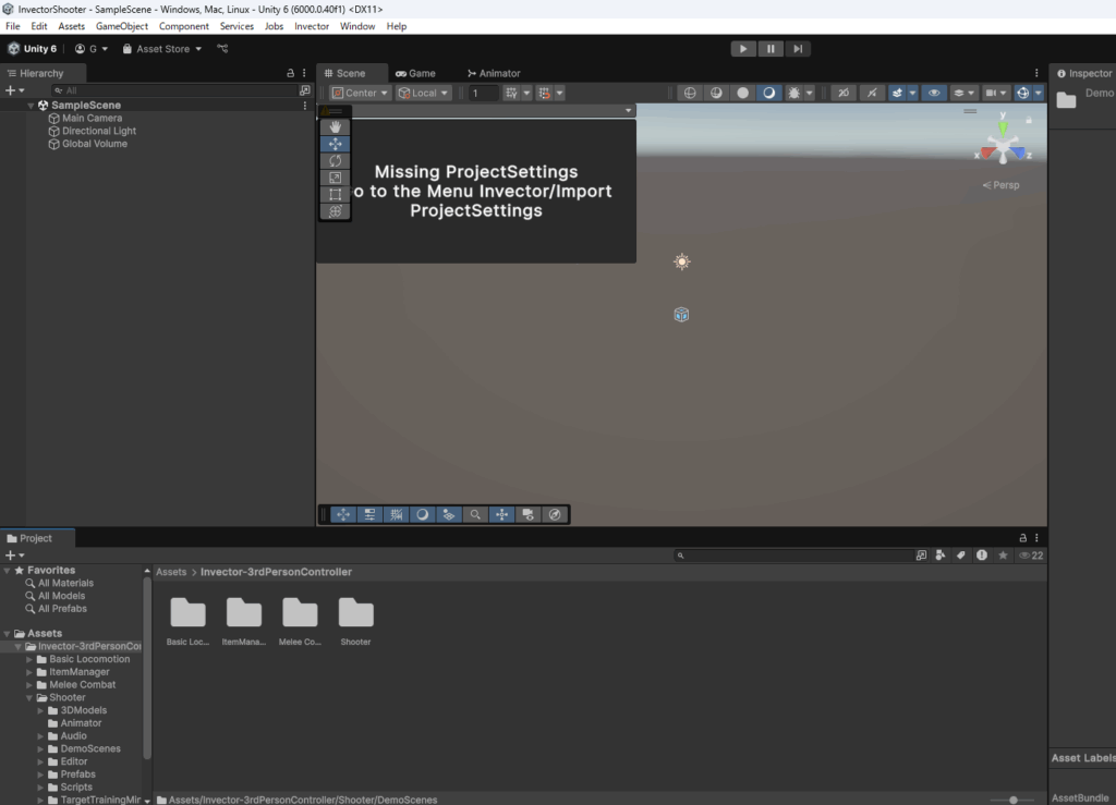 Invector>Import ProjectSettingsからシーンのセットアップが必要です。
