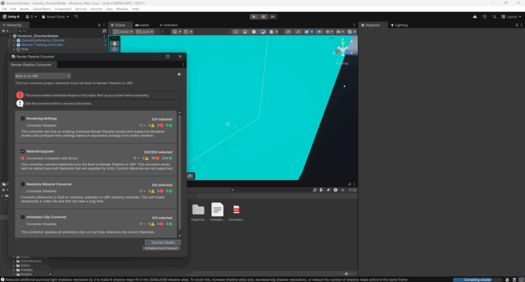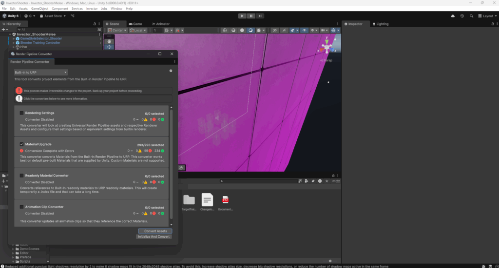 Material Upgradeにチェックを入れ、右下のConvert Assetsボタンをクリックします。