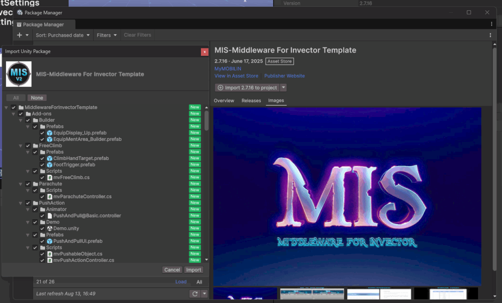 MIS-Middleaware For Invector TemplateInvectorと他のアセットを紐づけるミドルウェア無料