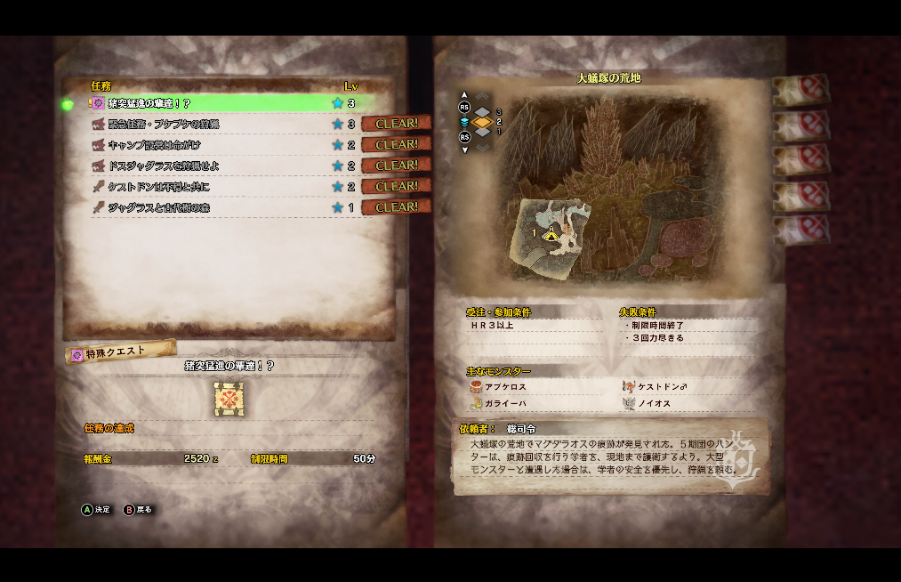 新マップ、大蟻塚の荒地の初クエストです。