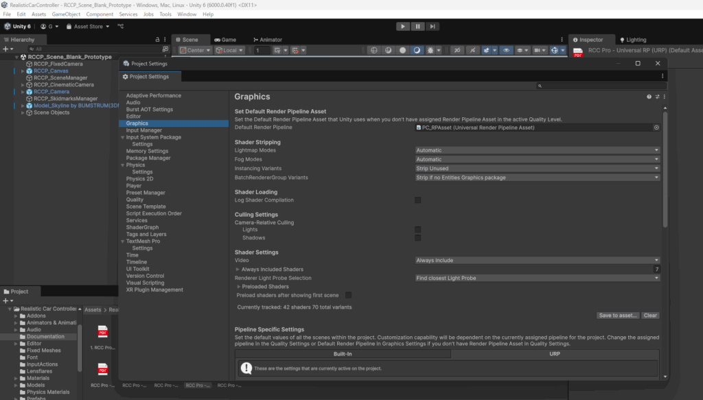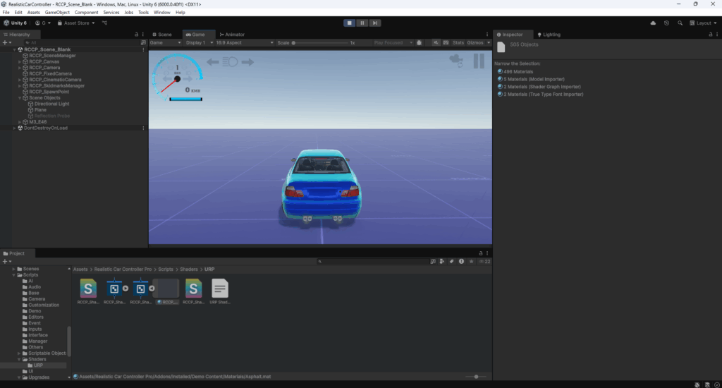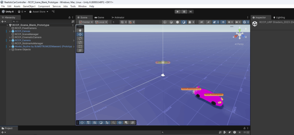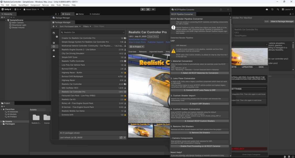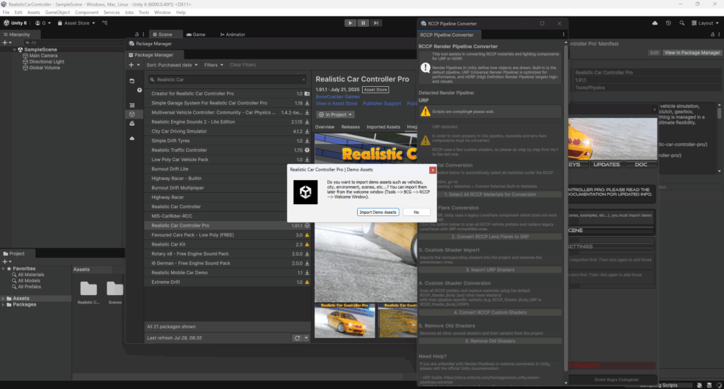 Unity 6に実際にアセットをインポートしてみます。今回はRealistic Car Controller Proをインポートします。プロジェクトはURP、使っているパソコンはWindows 11 ProでCPUは第13世代 Intel Core i7 GPUはGeForce RTX 4060です。