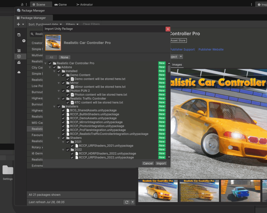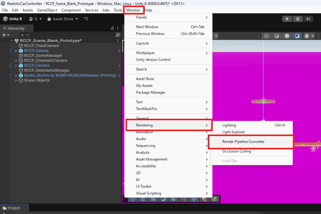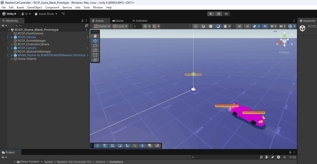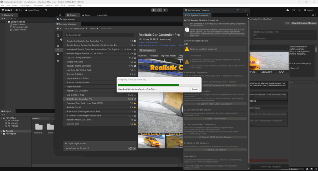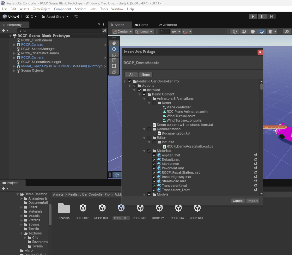 Unity 6に実際にアセットをインポートしてみます。今回はRealistic Car Controller Proをインポートします。プロジェクトはURP、使っているパソコンはWindows 11 ProでCPUは第13世代 Intel Core i7 GPUはGeForce RTX 4060です。