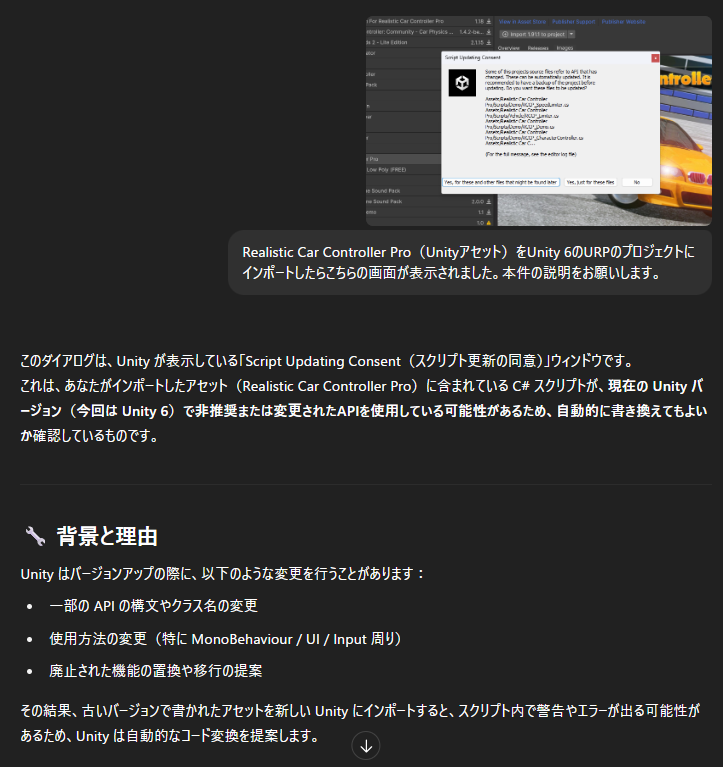 - 「今使ってるUnity(多分 Unity 6?)の新しい仕様に合わせて、スクリプトを自動で書き換えてもいい?」