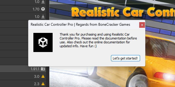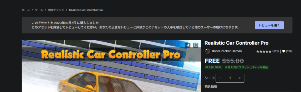 Proを買っていると無印が割り引かれたと思います。Realistic Car Controllerを出しているBoneCraker Gamesのアセットは、特定のアセットを持っていると他のアセットが割引になるようになっています。