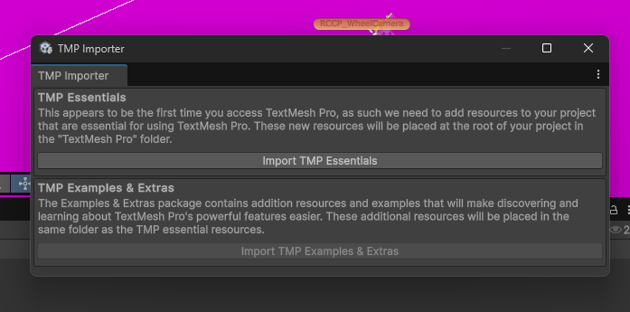 TMP(Text Mesh Pro)のインポートが完了しました。