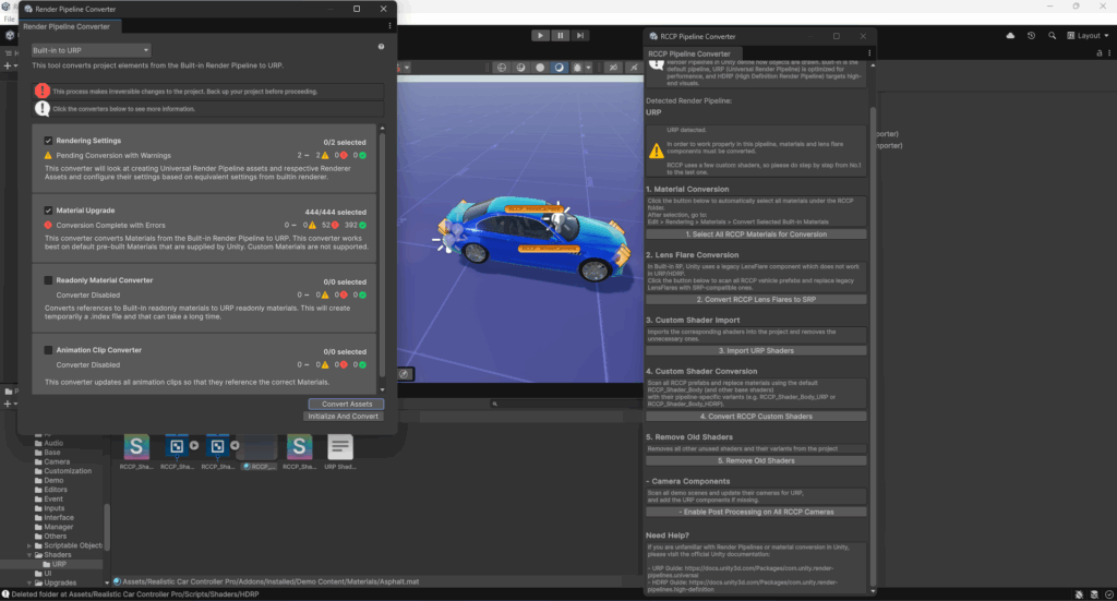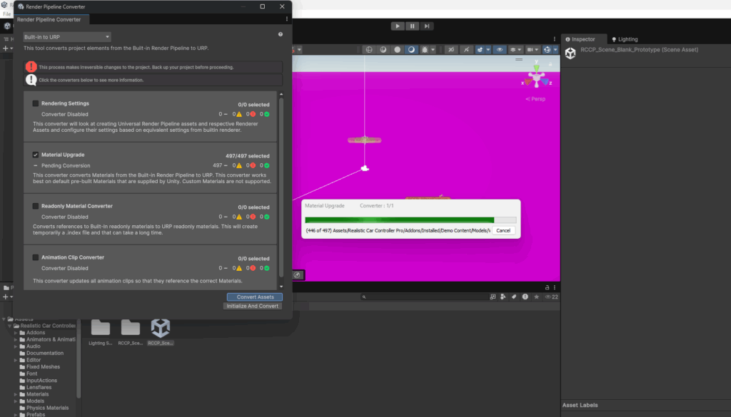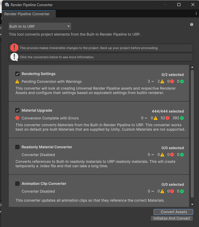 Render Pipeline Converterを起動してMaterial Upgradeを行います。